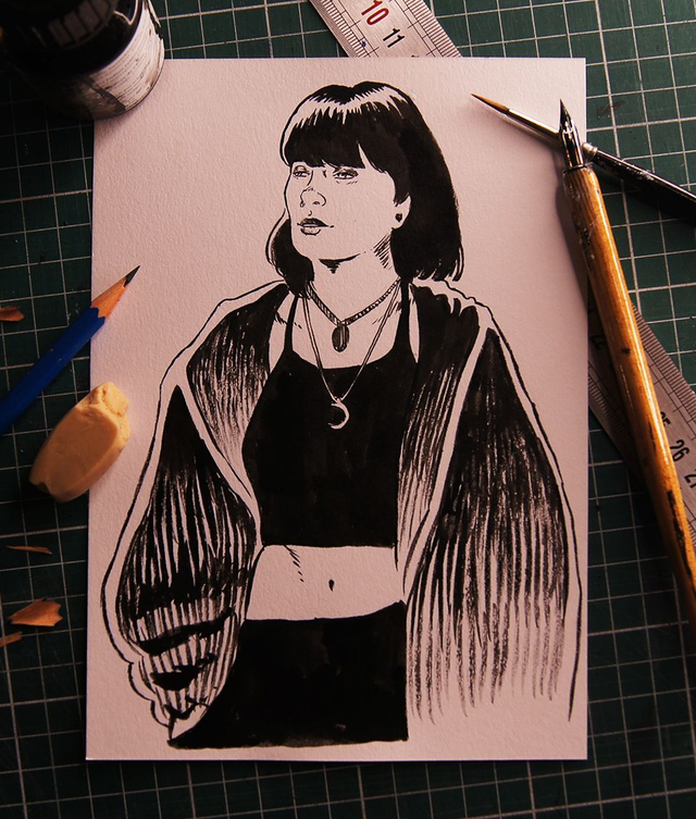 Dessin original unique, réalisé à l’encre de Chine sur papier 250 g, au format proche du A5.